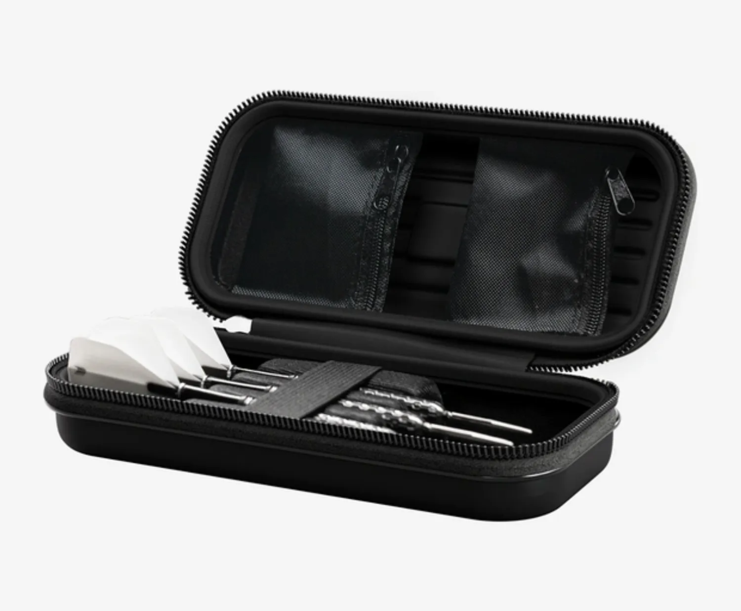 Бүтээгдэхүүний тайлбар: Хатуулаг, бат бөх байдлыг хадгалах, мөн доторх дартс болон дагалдах хэрэгслүүдийг хамгаалахын тулд бат бөх EVA материалаар хийгдсэн. Дотор талд нь зөөлөн мэдрэмж төрүүлэх, зурааснаас хамгаалахын тулд хилэн давхарга нэмсэн. Дартсуудыг бүрэн угсарсан хэлбэрээр нь байрлуулж, хөдөлгөөнөөс сэргийлэхийн тулд дээр нь сунадаг туузаар тогтоосон. Хэт зузаан хийцтэй тул далавч (flights) нь дарагдаж гэмтэхгүй. Мөн дотор талд нь сэлбэг хэрэгслүүдийг хийх зориулалттай хоёр ширхэг цахилгаантай жижиг уут байрлана.